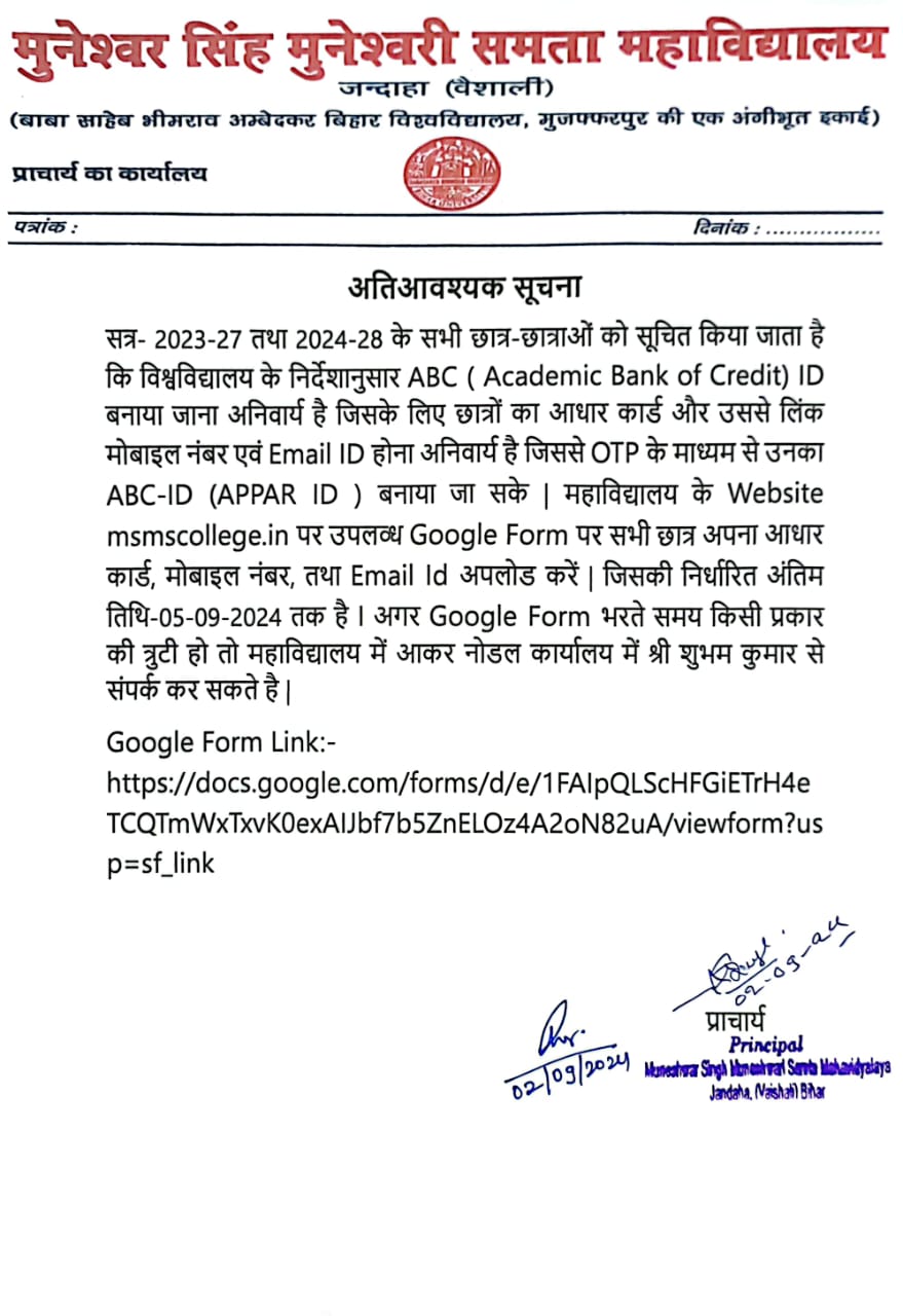 Jandaha is a learning centric community committed to excellent higher education which create intellectually stimulating environment that helps the college students to develop through classroom studies, Online studies, Laboratory studies, Library studies and also through Co – curricular activities and N.S.S programmes.